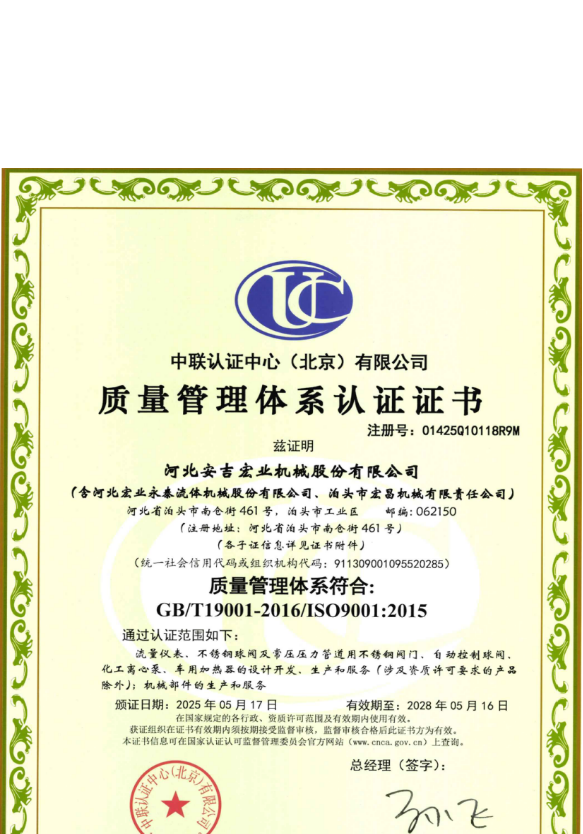 河北宏業(yè)永泰流體機(jī)械股份有限公司(原泊頭儀表總廠),生產(chǎn)流量?jī)x表產(chǎn)品有三十多年的歷史。參加了節(jié)流裝置國(guó)家標(biāo)準(zhǔn)GB/T2624-1981的起草工作。公司占地12萬(wàn)平方米,注冊(cè)資金3500萬(wàn)元。主要產(chǎn)品有節(jié)流裝置、儀器儀表、各類(lèi)不銹鋼閥門(mén)、各種化工離心泵。公司取得了ISO9001:2015質(zhì)量體系認(rèn)證、挪威船級(jí)社CE認(rèn)證、出口產(chǎn)品Emark認(rèn)證、特種設(shè)備制造許可證等。同時(shí)河北宏業(yè)永泰還是中石化物資供應(yīng)商網(wǎng)絡(luò)成員,取得了中石油、中海油物資供應(yīng)商準(zhǔn)入證,是中國(guó)神華集團(tuán)、華電集團(tuán)、大唐集團(tuán)、中廣核等公司合格供應(yīng)商。產(chǎn)品出口日本、阿爾及利亞等國(guó)家。